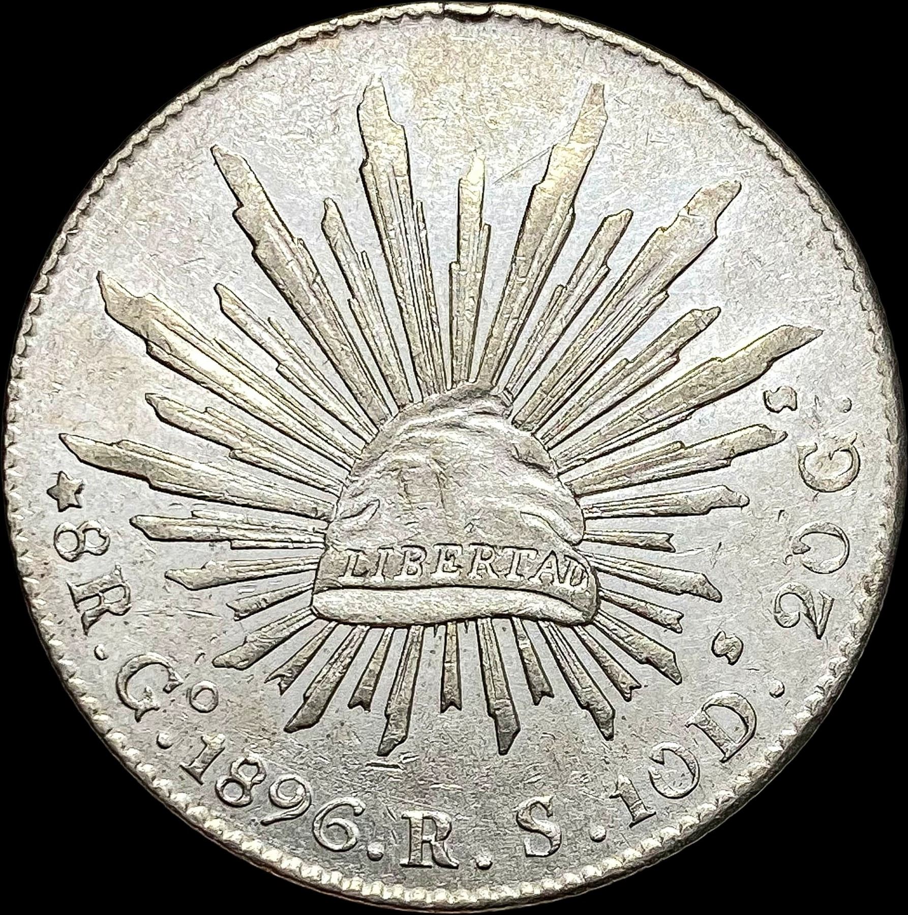 1896Go RS Mexico Silver 8 Reales Cap and Rays CHOICE AU