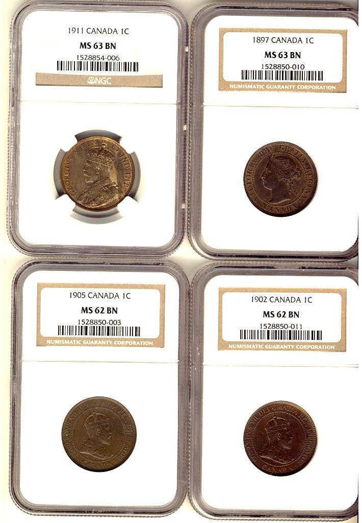 1897 1¢, 1911 MS63RB & 1902, 1905 MS62BN. Lot of 4 coins all NGC graded.