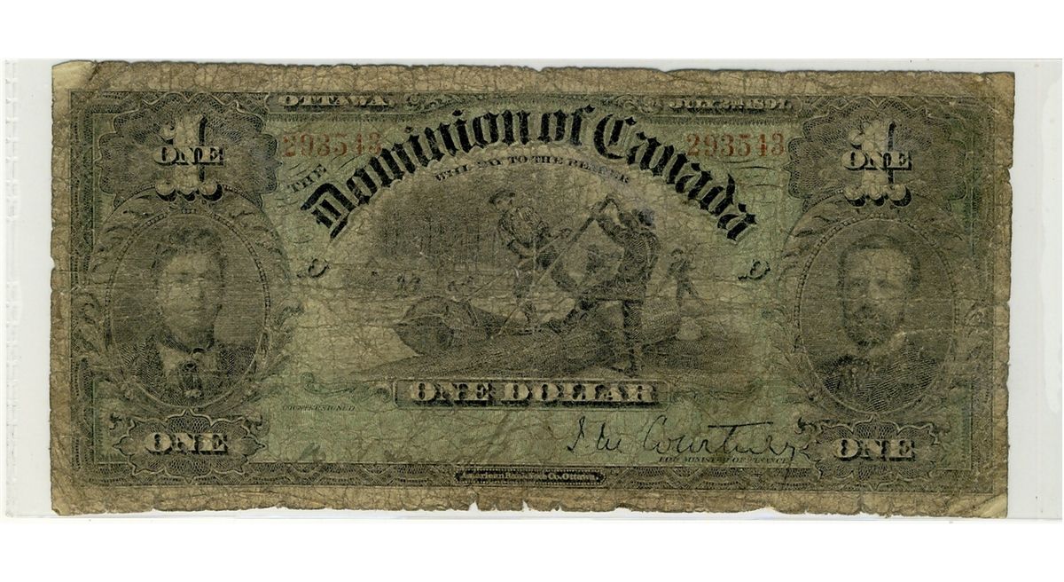 1897 $1 DC-12 #293543 VG for grade, with ragged edges.