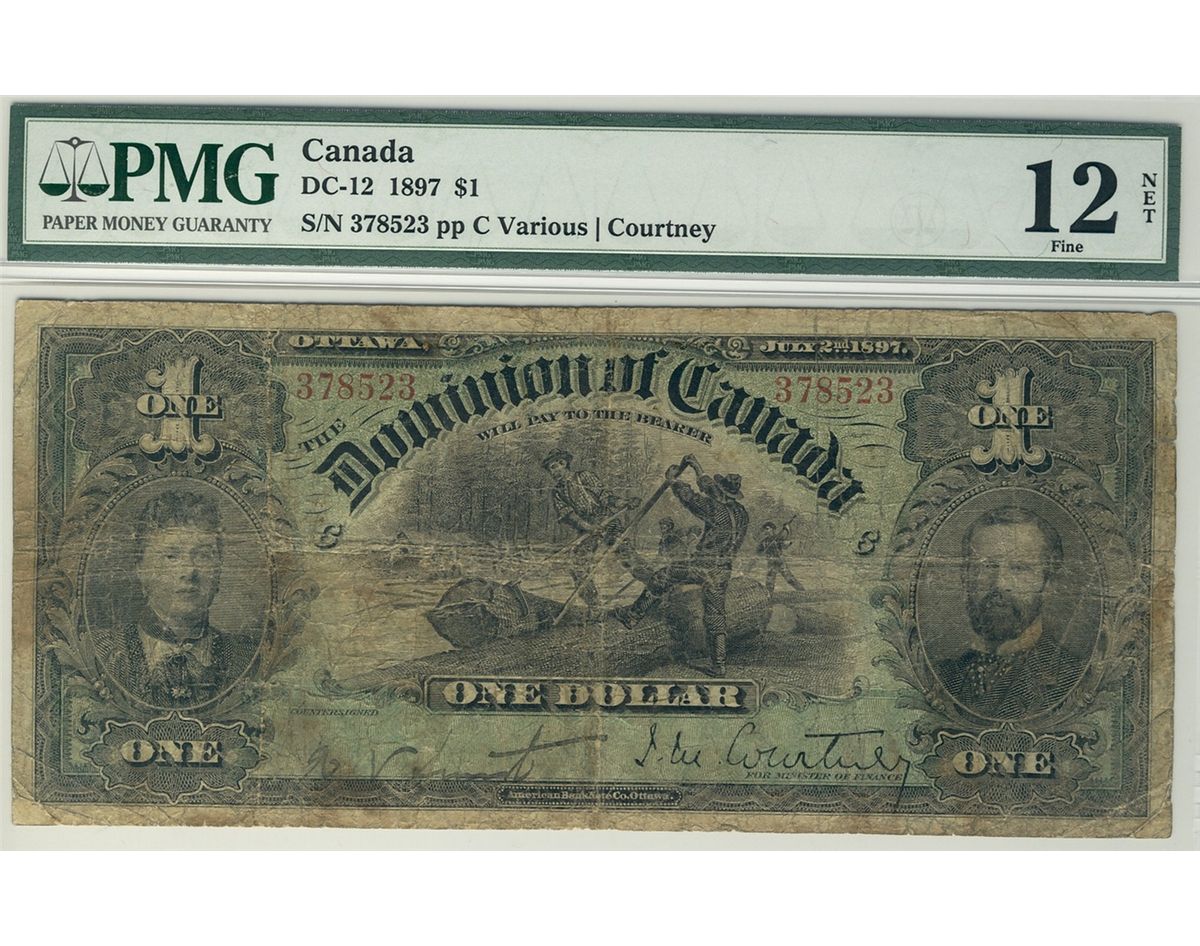 1897 $1 DC-12, PMG F12 Net. #378523, designated with tears.
