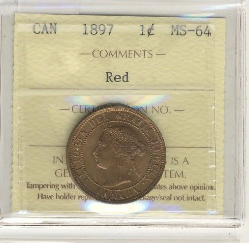 1897 1¢ ICCS MS64RD. Nice tones 80% red.