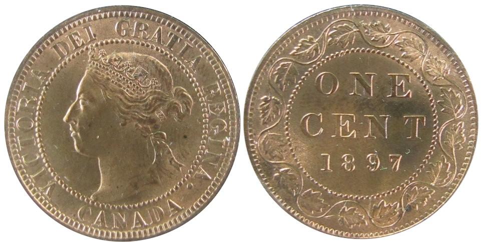 1897 1¢ ICCS MS65RD. 90% red with great lustre.