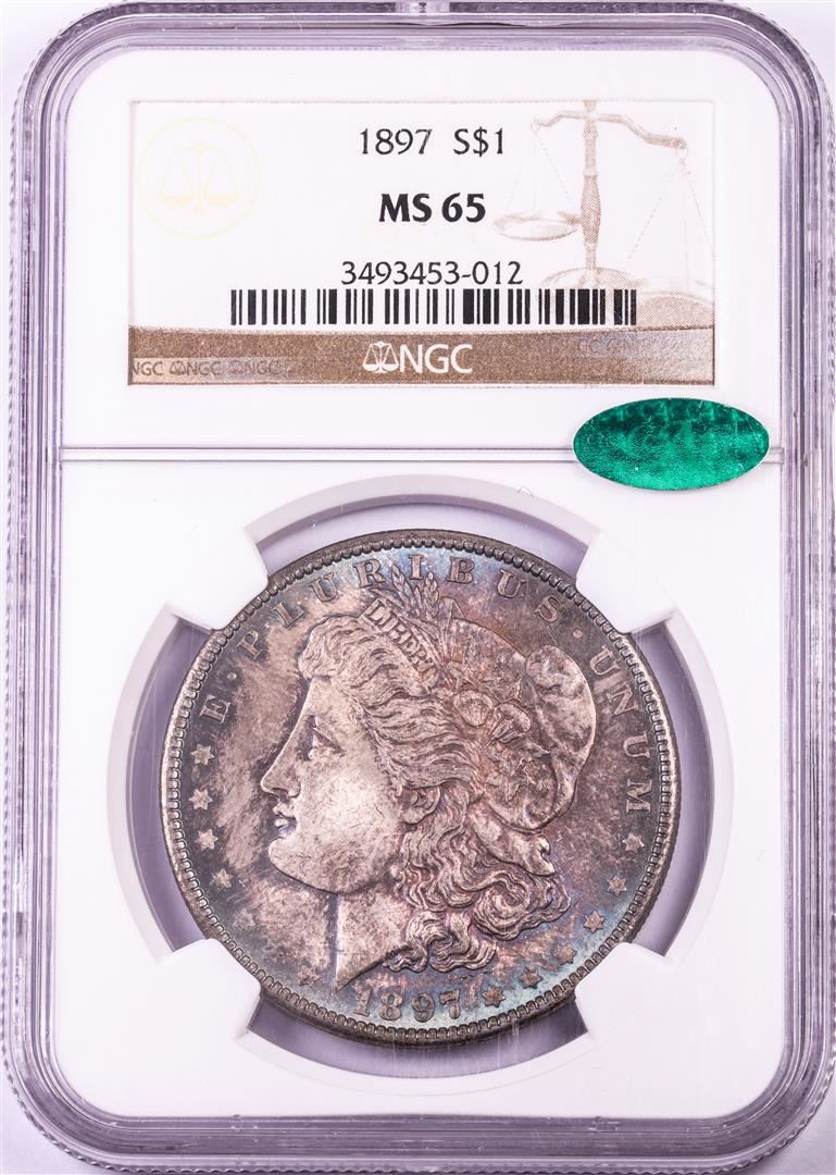 One 1897 $1 Morgan Silver Dollar Coin NGC MS65 CAC Nice Toning. NGC Certified.