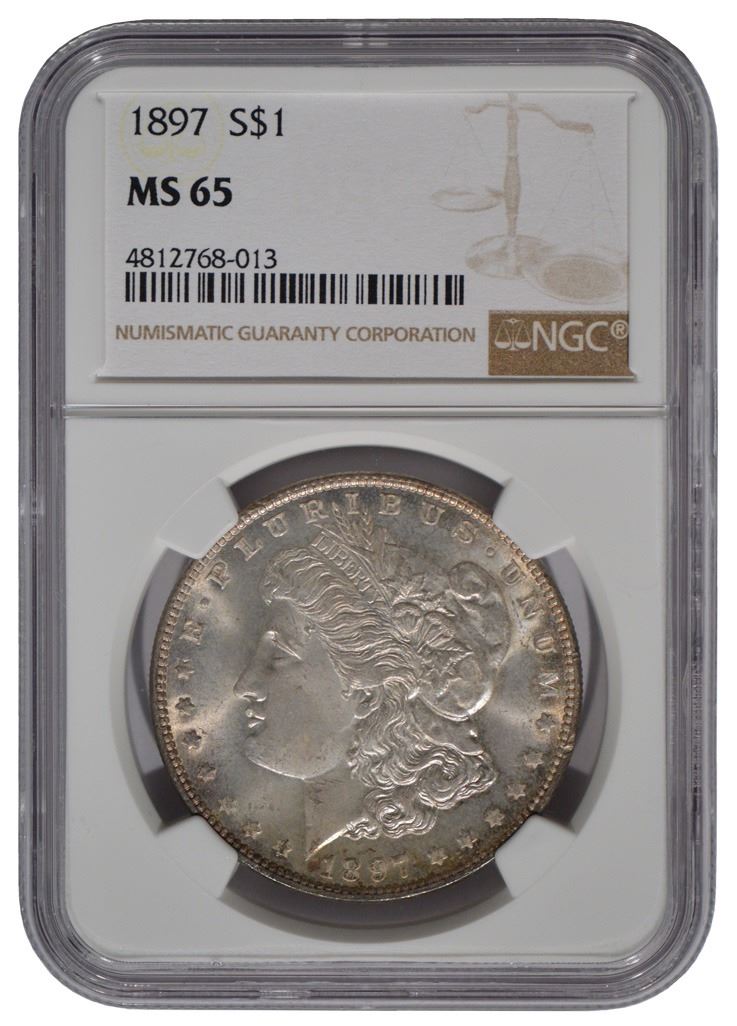 One 1897 $1 Morgan Silver Dollar Coin NGC MS65.