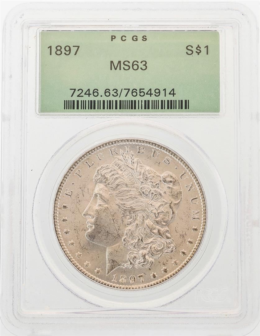 One 1897 $1 Morgan Silver Dollar Coin PCGS MS63. PCGS Graded.