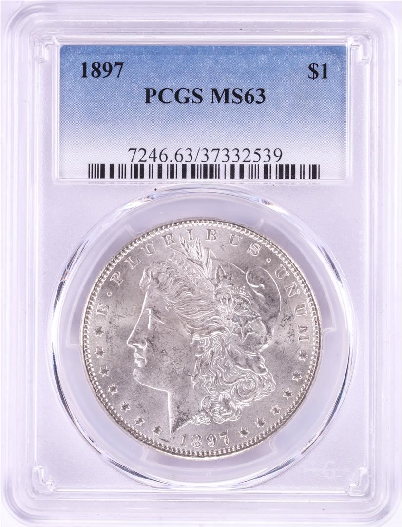 One 1897 $1 Morgan Silver Dollar Coin PCGS MS63. PCGS Graded.