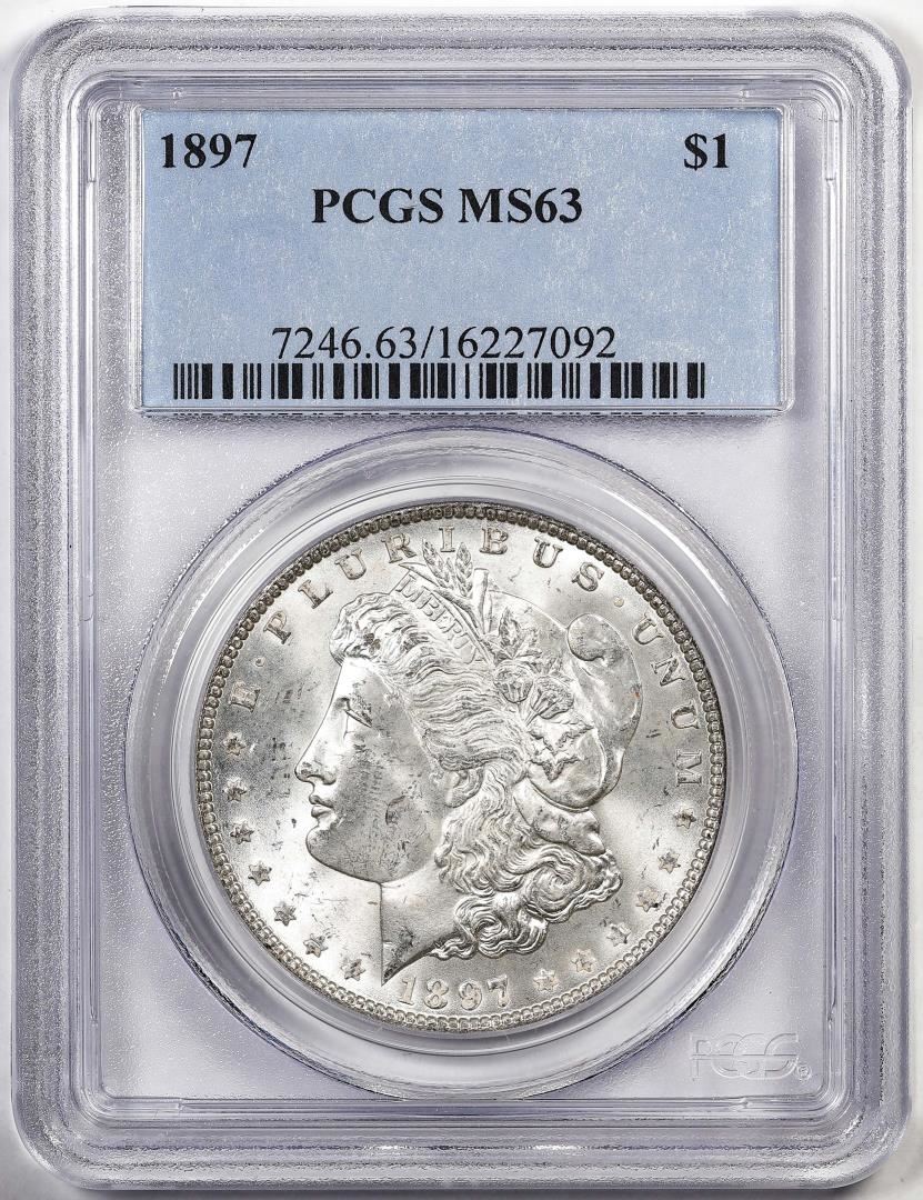 One 1897 $1 Morgan Silver Dollar Coin PCGS MS63. PCGS Graded.