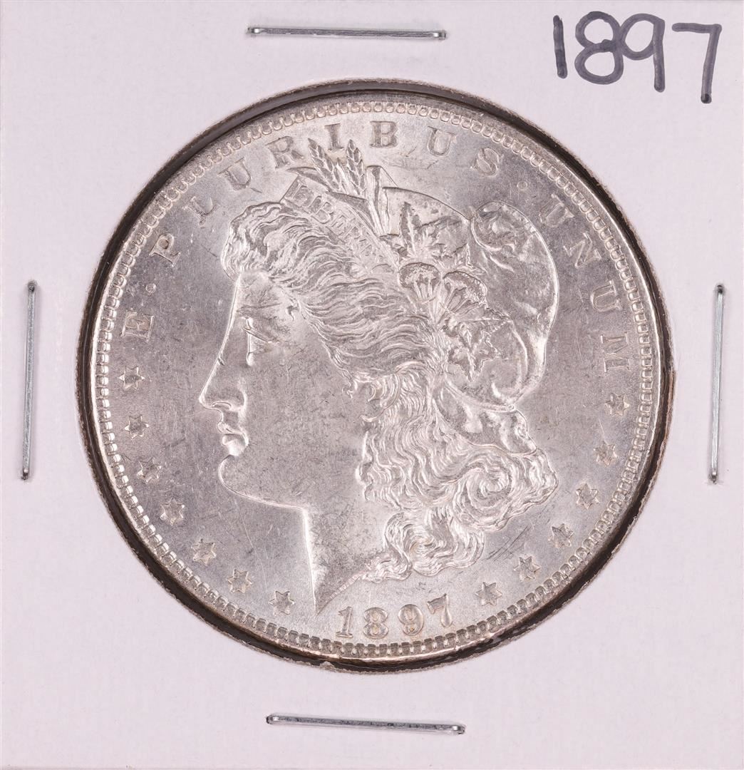 One 1897 $1 Morgan Silver Dollar Coin.