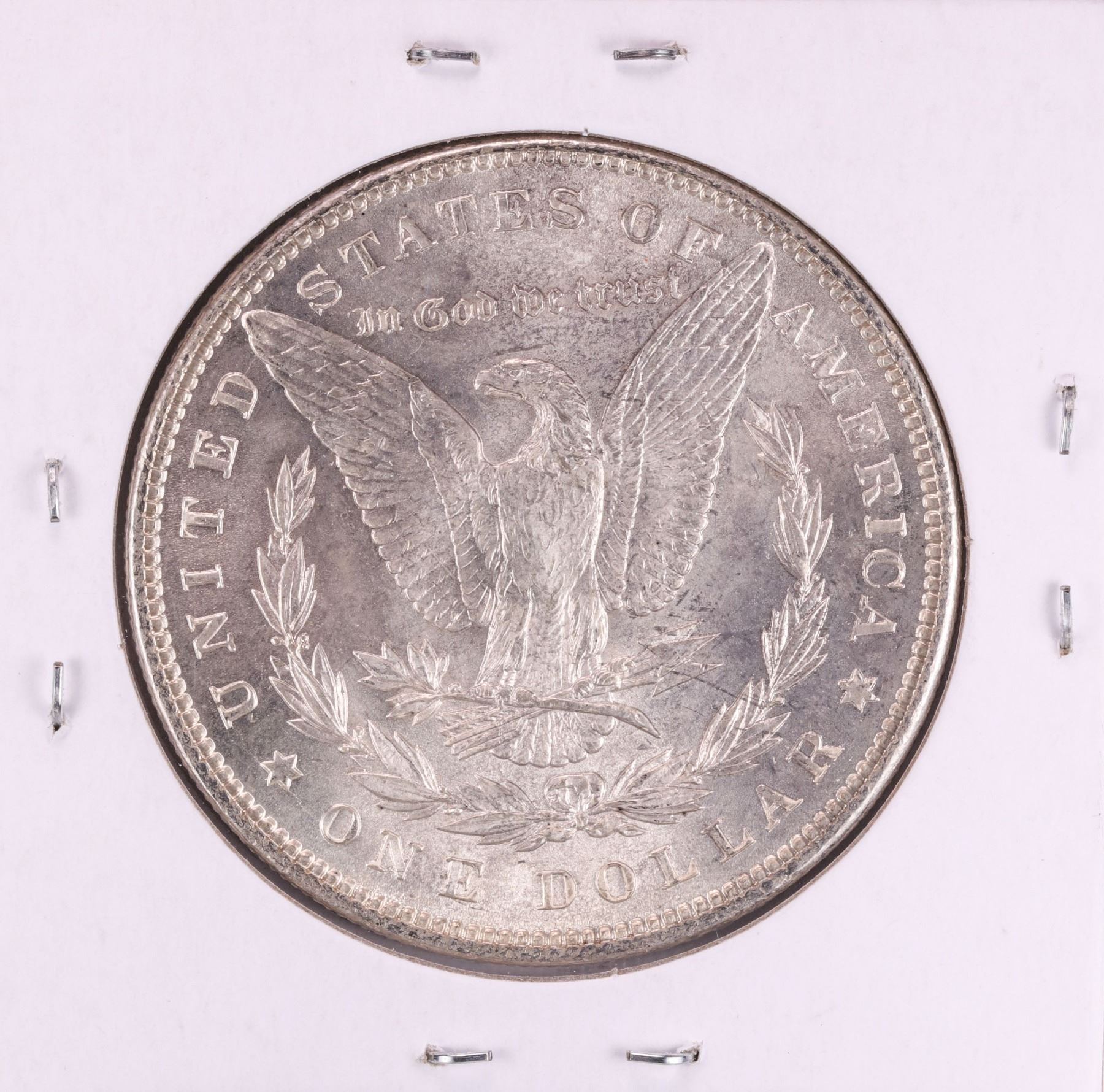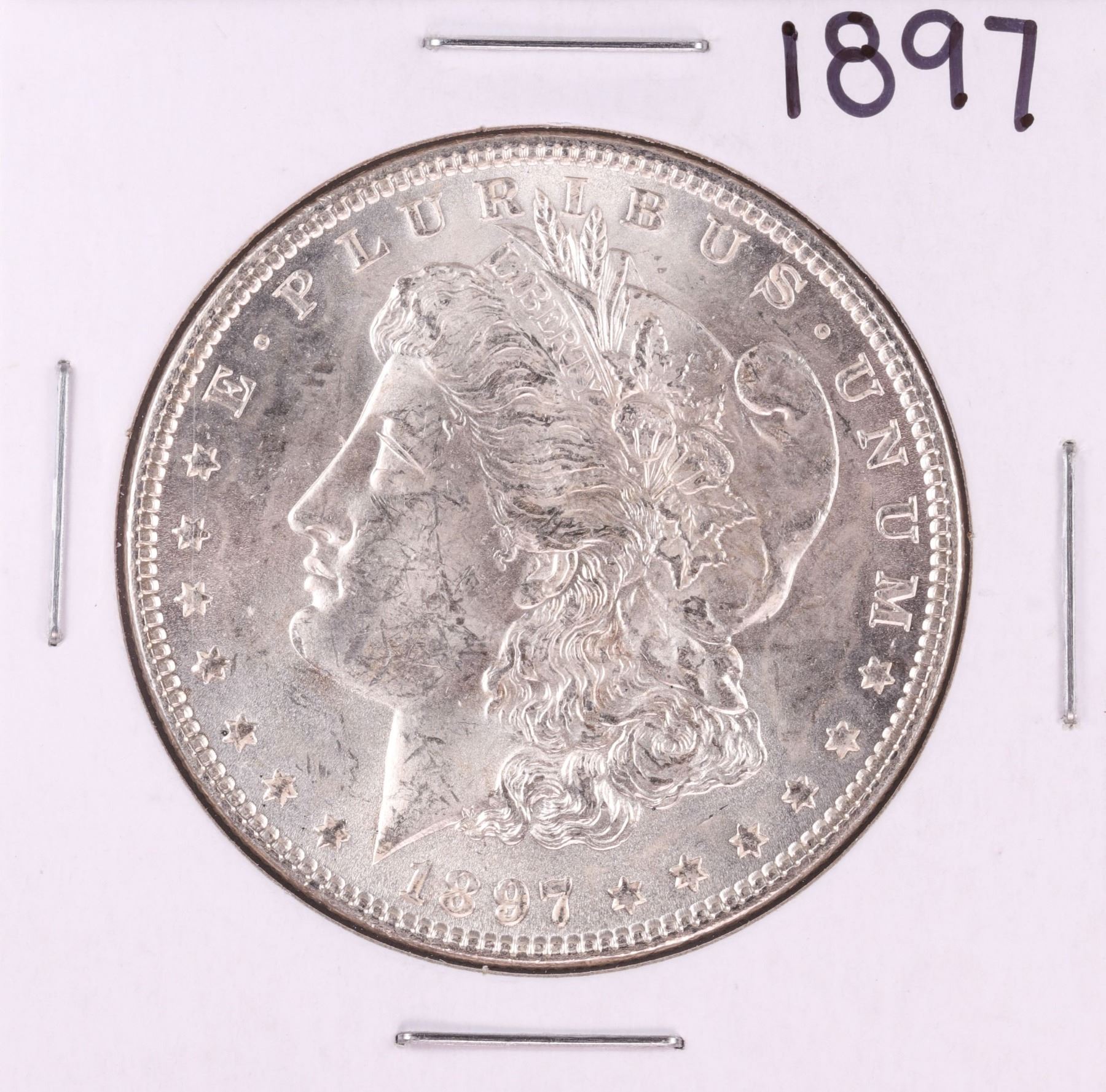 One 1897 $1 Morgan Silver Dollar Coin.