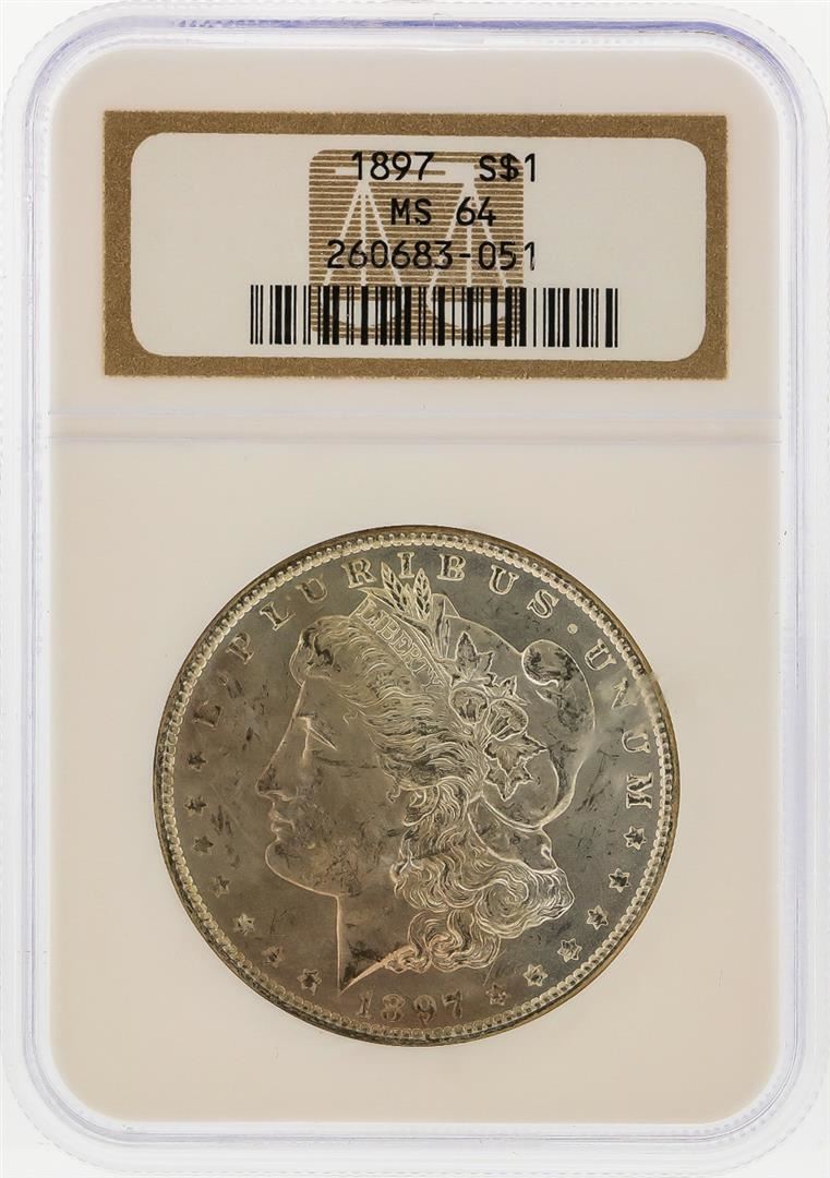 One 1897 $1 Morgan Silver Dollar NGC Graded MS64. NGC Certified.