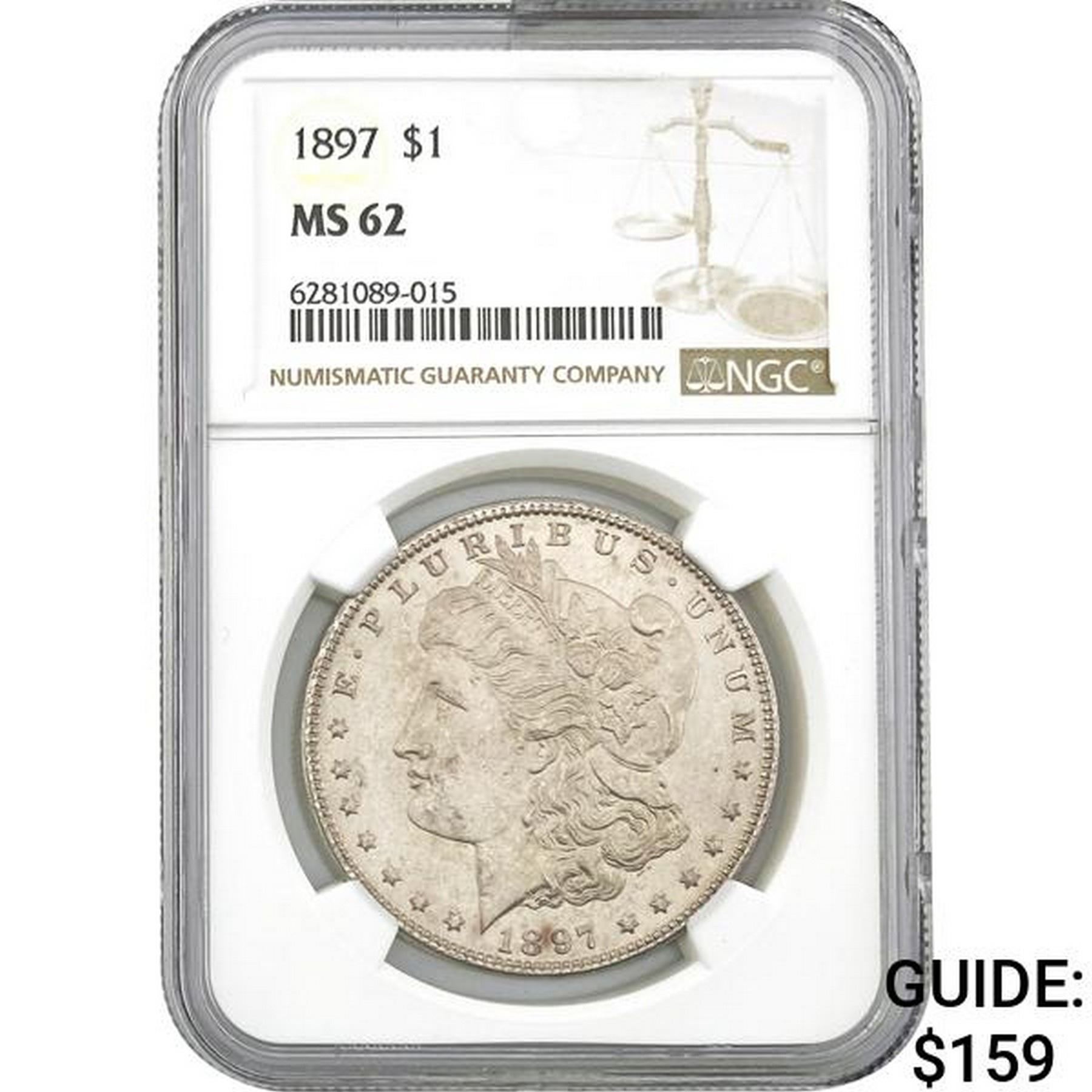 1897 $1 Morgan Silver Dollar NGC MS62