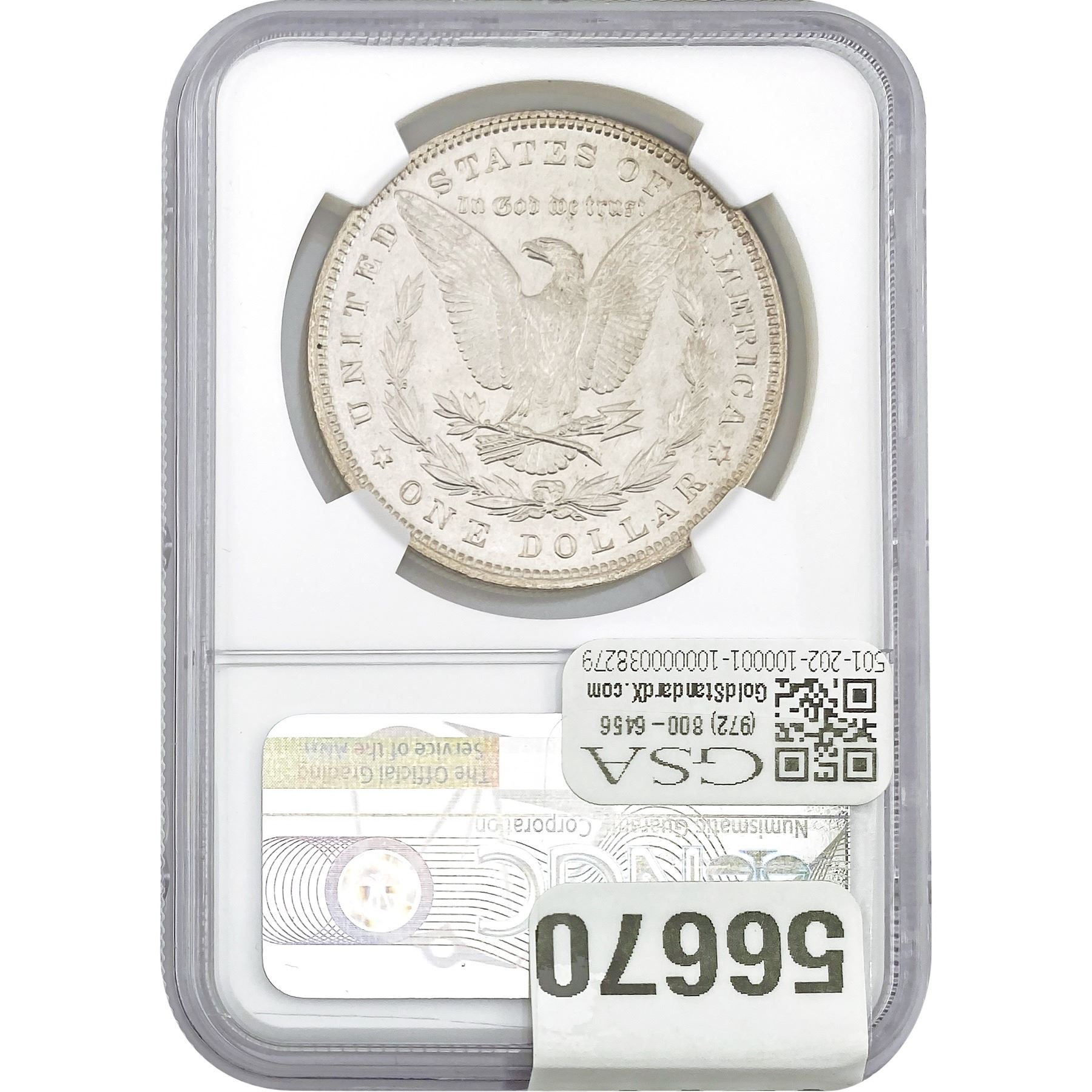 e. Coins sold referencing a third-party grading service are sold “AS IS” without any express or implied warranty, except for a guarantee by GSA that they are genuine. Removal or alteration of the holder, voids all of Bidder’s claims concerning that Product. Certain warranties may be available from the grading services and Bidders are referred to them for further details: Numismatic Guaranty Corporation (NGC), PO Box 4776, Sarasota, FL 34230, www.ngccoin.com/services/writtenguarantee.asp; Professional Coin Grading Services (PCGS), PO Box 9458, Newport Beach, CA 92658, www.pcgs.com/guarantee.html; ANACS, 6555 S. Kenton St., Ste. 303, Englewood, CO 80111; and Independent Coin Grading Co. (ICG), 7901 East Bellview, Ave., Suite 50, Englewood, CO 80111.