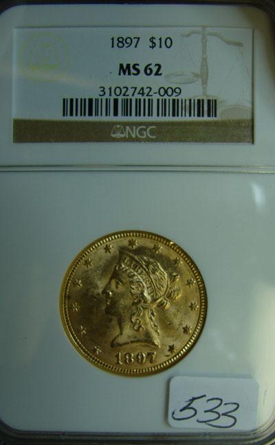 1897 $10.00 Liberty Head Gold Coin NGC MS62