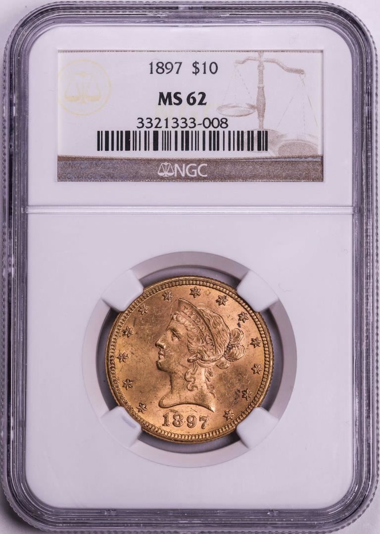 One 1897 $10 Liberty Head Eagle Gold Coin NGC MS62. NGC Certified.