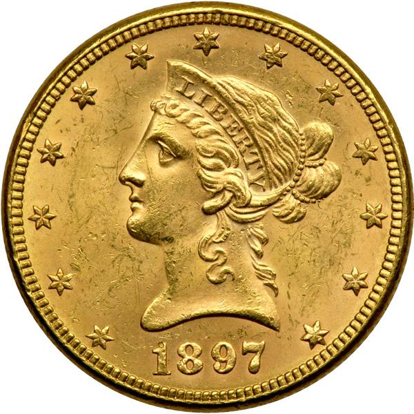 1897 $10 Liberty. PCGS graded MS-63. Untoned and frosty (PCGS # 8737) .