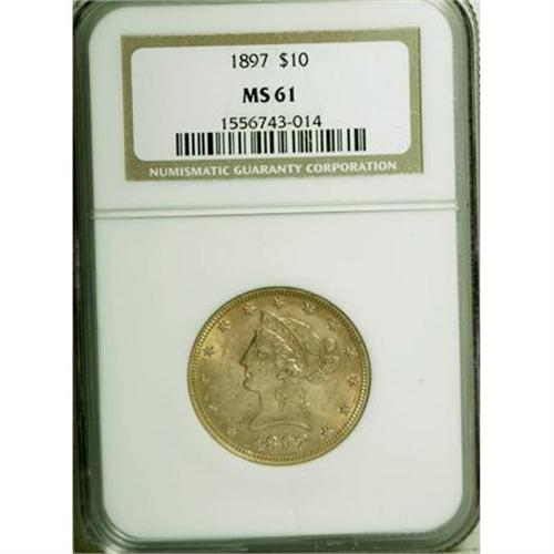 1897 $10 MS61 NGC. NGC Census: (2200/3450). PCGS P