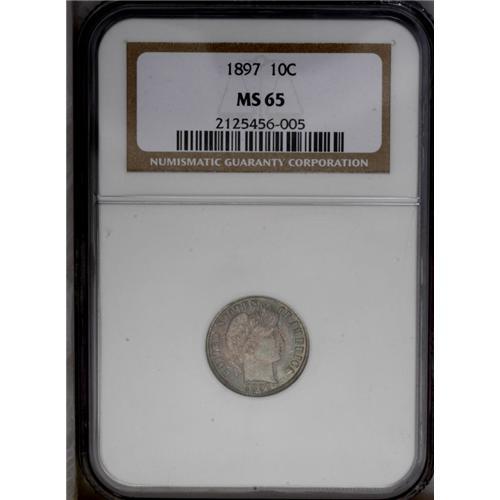 1897 10C MS65 NGC. This meticulously struck Gem has we 1897[10C] MS65 NGC.