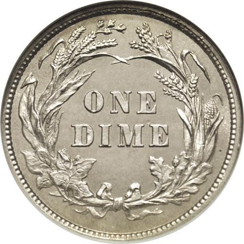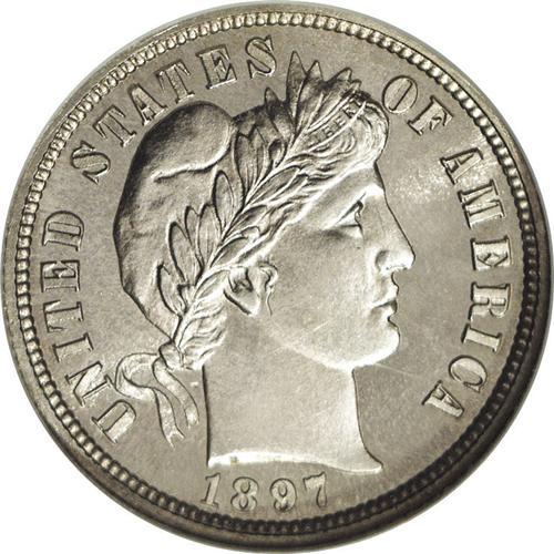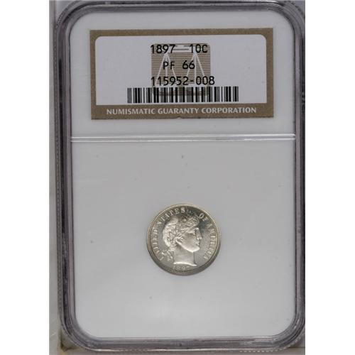 1897 10C PR66 NGC. The frosty, brilliant silver-white 1897