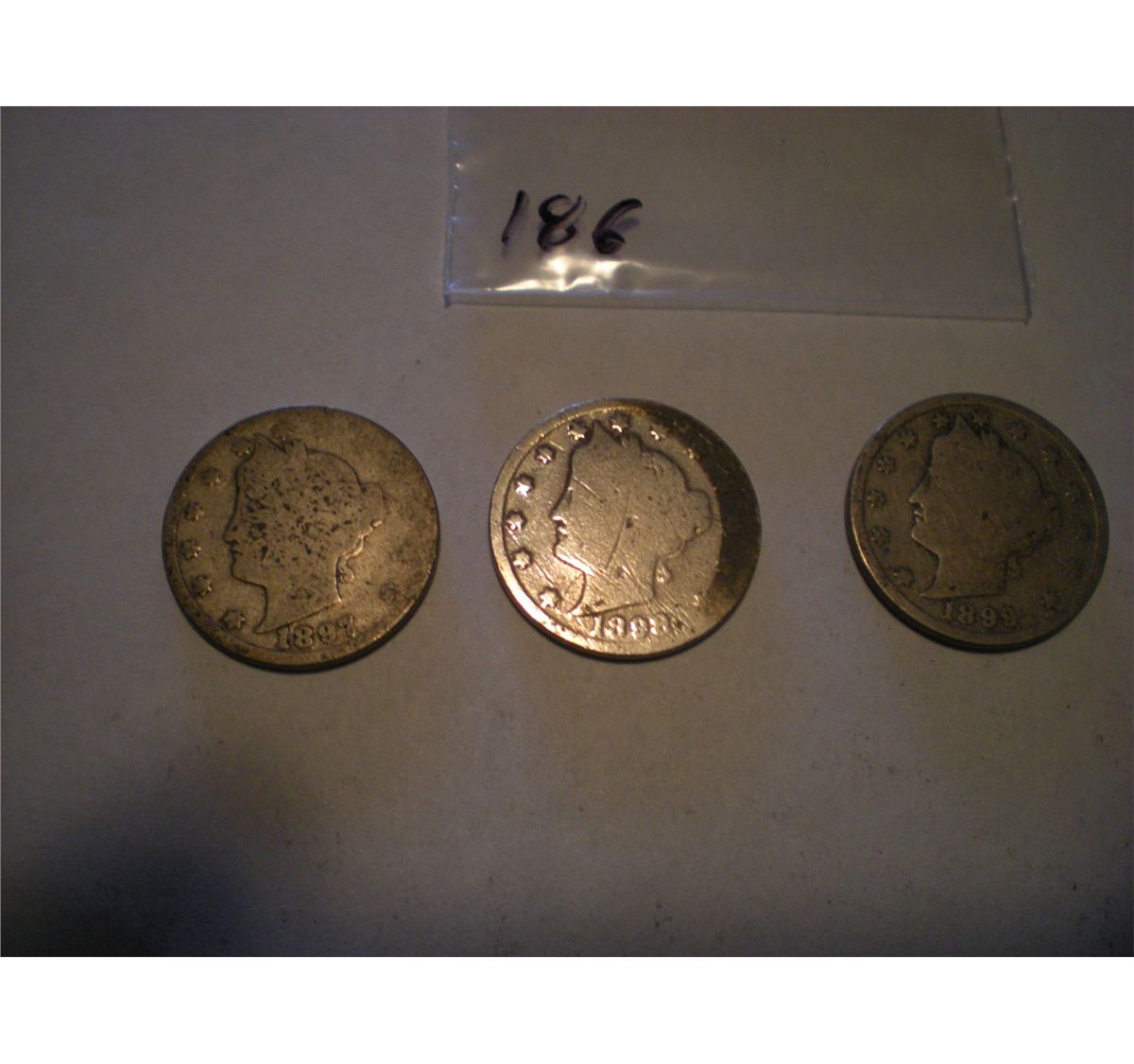 1897, 1898, 1899 "V"/Liberty Nickels 3 coin set!! ***Coin, Currency, Gemstones & All Items Listed in this auction along with their respective Grades, Conditions and Values are not T&T Auctions Responsibility. Every person has their own opinion. It is the responsibility of the buyer to examine, grade and value each item in this auction to their own satisfaction before they bid. Bidders shall rely entirely on their own inspection and information before bidding.
