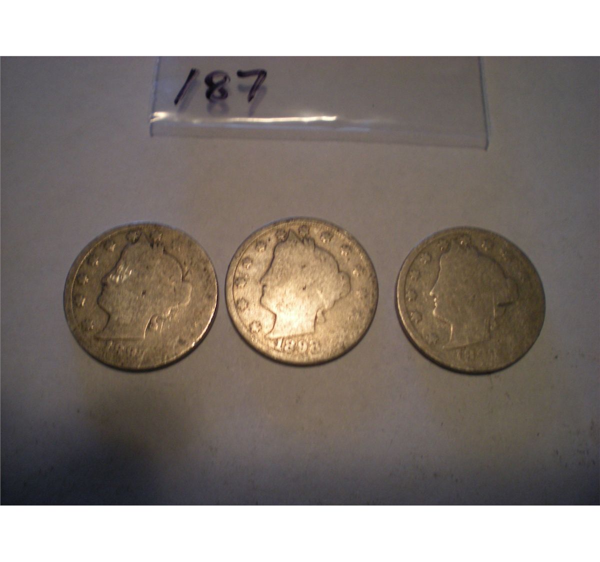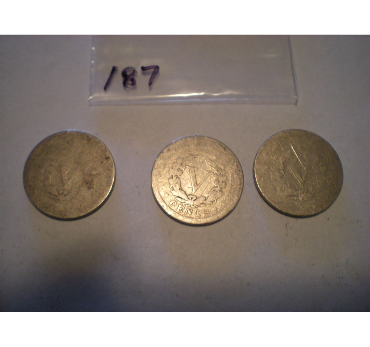 1897, 1898, 1899 "V"/Liberty Nickels 3 coin set!! ***Coin, Currency, Gemstones & All Items Listed in this auction along with their respective Grades, Conditions and Values are not T&T Auctions Responsibility. Every person has their own opinion. It is the responsibility of the buyer to examine, grade and value each item in this auction to their own satisfaction before they bid. Bidders shall rely entirely on their own inspection and information before bidding.