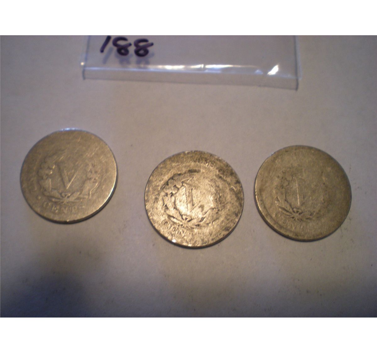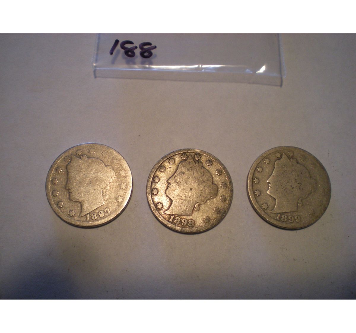 1897, 1898, 1899 "V"/Liberty Nickels 3 coin set!! ***Coin, Currency, Gemstones & All Items Listed in this auction along with their respective Grades, Conditions and Values are not T&T Auctions Responsibility. Every person has their own opinion. It is the responsibility of the buyer to examine, grade and value each item in this auction to their own satisfaction before they bid. Bidders shall rely entirely on their own inspection and information before bidding.