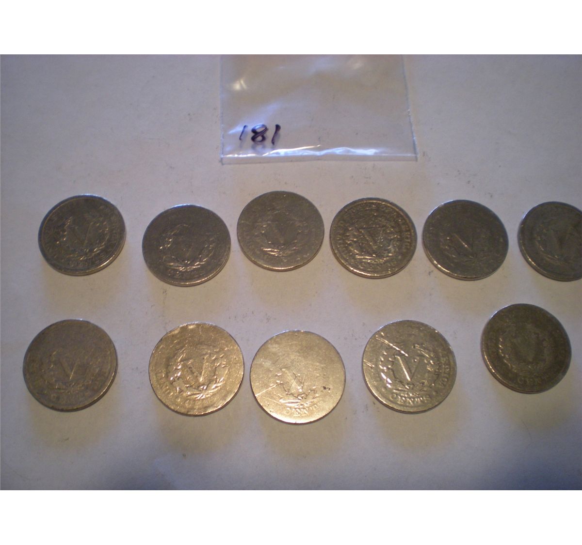 1897 & 1898 "V"/Liberty Nickels All Cleaned in this set x11 coins ***Coin, Currency, Gemstones & All Items Listed in this auction along with their respective Grades, Conditions and Values are not T&T Auctions Responsibility. Every person has their own opinion. It is the responsibility of the buyer to examine, grade and value each item in this auction to their own satisfaction before they bid. Bidders shall rely entirely on their own inspection and information before bidding.