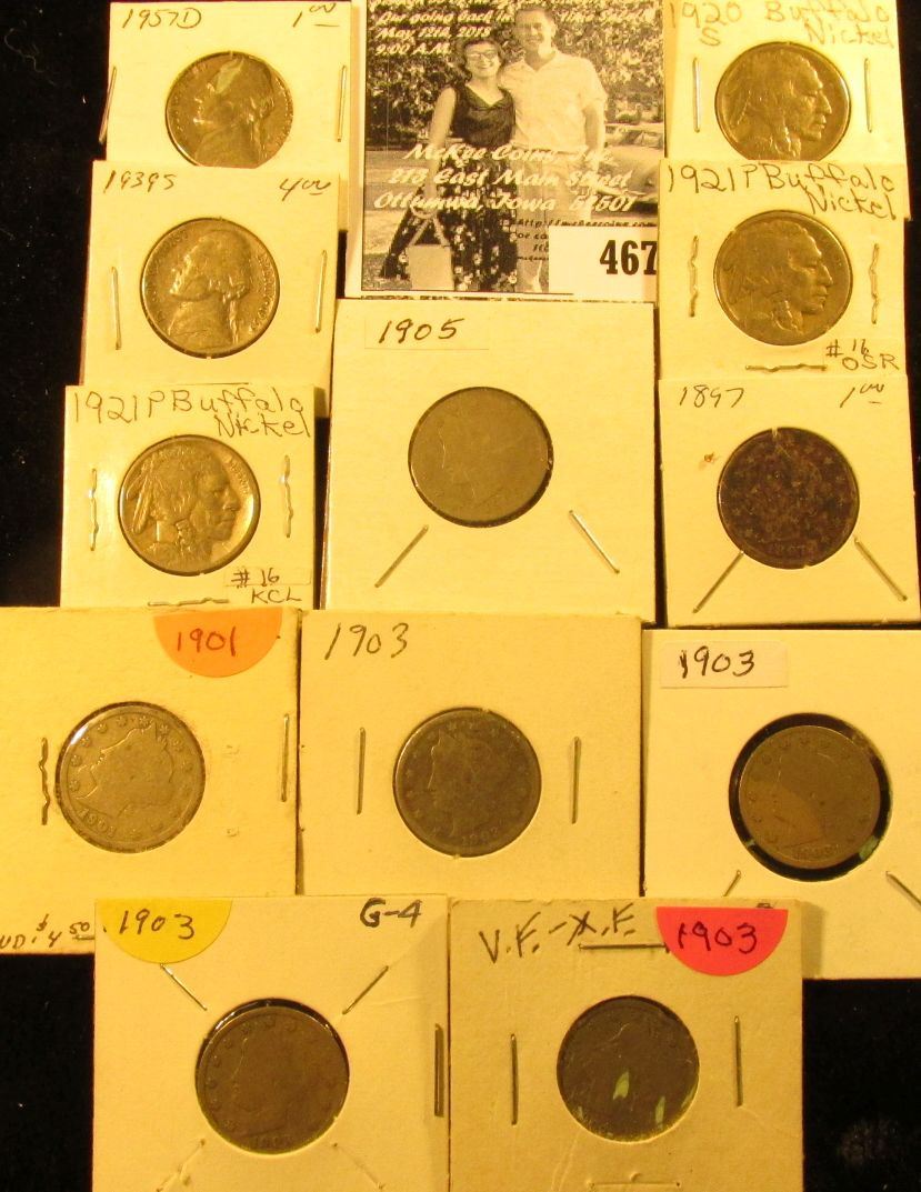 1897, 1901, (4) 1903, 05, 1920 S, (2) 21 P, 39 S, & 57 D U.S. Nickels in carded holders.