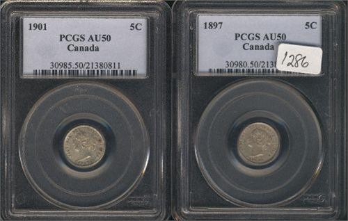 1897, 1901 both PCGS AU-50, two decent