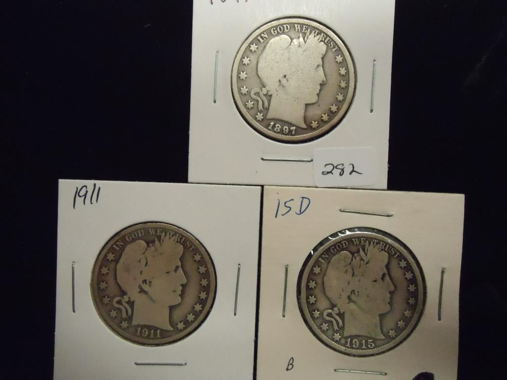 1897,1911 & 1915-D BARBER HALF DOLLARS