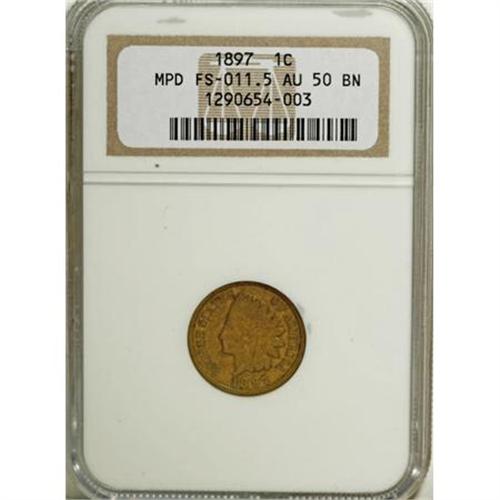 <B>1897 1C AU50 NGC.</B></I> FS-011.5. The date is misplaced. NGC Census: (1/154). PCGS Population (6/57). Mintage: 50,466,328. Numismedia Wsl. Price for NGC/PCGS coin in AU50: $19. (#2196)<BR><BR><B>Coin Engraver:</B> James B. Longacre<BR><BR><b>Shipping:</b> Coins & Currency (<a target="_blank" href="http://www.heritageauctions.com/common/shipping.php">view shipping information</a>)
