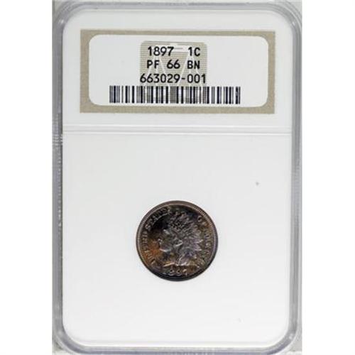 <B>1897 1C PR66 Brown NGC.</B></I> NGC Census: (15/1). PCGS Population (10/1). Mintage: 1,938. Numismedia Wsl. Price for NGC/PCGS coin in PR66: $372. (#2378)<BR><BR><B>Coin Engraver:</B> James B. Longacre<BR><BR><b>Shipping:</b> Coins & Currency (<a target="_blank" href="http://www.heritageauctions.com/common/shipping.php">view shipping information</a>\)