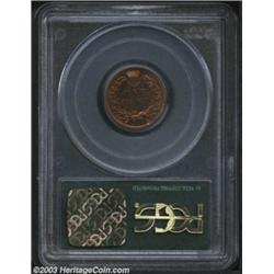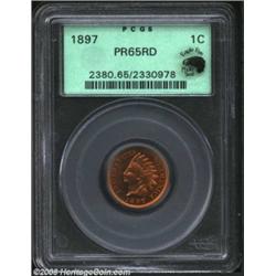 1897 1C PR65 Red PCGS. Eagle Eye Photo Seal. Even if the surfaces were not appreciably reflective, the pinpoint striking definition would confirm this coin's specimen status. The luster is full with orange-red color that assumes somewhat of a golden cast over the reverse. What little carbon is present is largely out-of-the-way at the reverse denticles. A scarcer 1890s proof Cent with Red surfaces, this despite an original mintage of 1,938 pieces that is not inordinately low for the decade.From the Colburn Collection. Important notice: We expect to be auctioning lots at the rate of 200-250 per hour. On occasion eBay live bid software cannot keep up with the pace of the auctions where 4-5 lots per minute can hammer down, so we recommend that you place a realistic absentee bid now as insurance to avoid disappointment. Also please note that all Heritage/CAA lots purchased through eBay Live carry a 20% Buyer's Premium. Please make sure you read the Terms and Conditions.