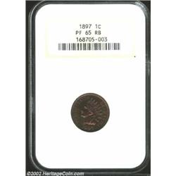 1897 1C PR65 Red and Brown NGC. Lovely intermingled apricot and lilac colors. A needle-sharp Gem with seemingly pristine surfaces. Miniscule lintmarks (as made) below the chin of the Indian and AM in AMERICA are mentioned for pedigree purposes. Important notice: We expect to be auctioning lots at the rate of 200-250 per hour. Sometimes eBay Premier live bid software cannot keep up with that pace, so we strongly recommend that you place a realistic proxy bid now as insurance to avoid disappointment. Also please note that all Heritage/CAA lots purchased through eBay Premier carry a 20% Buyer's Premium. Please make sure you read the Terms and Conditions.
