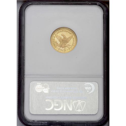 <B>1897<$2 1/2> MS63 NGC.</B></I> Sharply struck and fully brilliant with lovely yellow-gold color and satiny surfaces. A few wispy hairlines keep this from a higher grade.