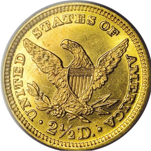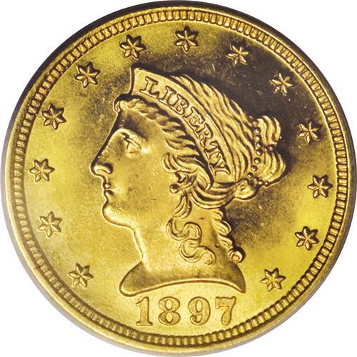 <B>1897 $2 1/2 MS65 PCGS.</B></I> The design elements are all crisply defined, and the semi-prooflike fields give the piece a bright, flashy appearance. Expertly preserved and nearly blemish-free, this is an impressive Gem example of this low-mintage issue from the Philadelphia Mint. Population: 57 in 65, 25 finer (4/07).<BR><BR><b>Shipping:</b> Coins & Currency (<a target="_blank" href="http://www.heritageauctions.com/common/shipping.php">view shipping information</a>)