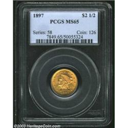 <TABLE cellSpacing=0 cellPadding=0 width="100%" bgColor=#000000 border=0><TBODY><TR><TD width="100%"><TABLE cellSpacing=1 cellPadding=3 width="100%" border=0><TBODY><TR><TD width="100%" bgColor=#79735c><FONT face=arial color=#ffffff size=3><B>Description</B> </FONT></TD></TR><TR><TD width="100%" bgColor=#ffffff><FONT face=arial size=2><B>1897 $2 1/2 MS65 PCGS.</B></I> A lustrous and exquisitely preserved Gem that has hues of beautiful rose color. A very impressive example that would be an outstanding addition to a type set. Less than 30,000 pieces were struck. </FONT></TD></TR></TBODY></TABLE></TD></TR></TBODY></TABLE><BR><A name=PricesRealized></A><TABLE cellSpacing=0 cellPadding=0 width="100%" bgColor=#000000 border=0><TBODY><TR><TD width="100%"><TABLE cellSpacing=1 cellPadding=3 width="100%" border=0><TBODY><TR><TD width="100%" bgColor=#79735c><A name=PR><FONT face=arial color=#ffffff size=3><B>Previous Prices from Heritage Auctions</B> </FONT></A></TD></TR><TR><TD bgColor=#f6f6ed><TABLE cellSpacing=0 cellPadding=0 width="100%" border=1><TBODY><TR><TD align=middle width="33%"><B>Date</B></TD><TD align=middle width="33%"><B>Service</B></TD><TD align=middle width="33%"><B>Price</B></TD></TR><TR bgColor=whitesmoke><TD width="33%"><B>02/01/2001</B></TD><TD width="33%">PCGS</TD><TD width="33%">$1,840.00</TD></TR><TR bgColor=whitesmoke><TD width="33%"><B>01/01/1991</B></TD><TD width="33%">PCGS</TD><TD width="33%">$3,740.00</TD></TR><TR bgColor=whitesmoke><TD width="33%"><B>02/01/1991</B></TD><TD width="33%">PCGS</TD><TD width="33%">$3,190.00</TD></TR><TR bgColor=whitesmoke><TD width="33%"><B>09/28/2002</B></TD><TD width="33%">NGC</TD><TD width="33%">$1,506.50</TD></TR><TR bgColor=whitesmoke><TD width="33%"><B>10/01/1993</B></TD><TD width="33%">NGC</TD><TD width="33%">$2,310.00</TD></TR><TR bgColor=whitesmoke><TD width="33%"><B>01/10/1998</B></TD><TD width="33%">NGC</TD><TD width="33%">$2,415.00</TD></TR></TBODY></TABLE></TD></TR><TR><TD bgColor=#ffffff><FONT face=arial size=1 ?>PLEASE NOTE: All prices realized reflect the final hammer price PLUS the buyer's premium in auctions that charge a buyer's premium. Each item has a notation at the top of the listing indicating whether that lot included a buyer's premium. Example: A item that sells with a final hammer price of $100 and a 20% buyer's premium will display with a price realized of $120. All information listed is intended to be as accurate as possible, but errors are possible. Please use this guide carefully and inform us of any inaccuracies. </FONT></TD></TR></TBODY></TABLE></TD></TR></TBODY></TABLE><BR><TABLE cellSpacing=0 cellPadding=0 width="100%" bgColor=#000000 border=0><TBODY><TR><TD width="100%"><TABLE cellSpacing=1 cellPadding=3 width="100%" border=0><TBODY><TR><TD width="100%" bgColor=#79735c colSpan=6><FONT face=arial color=#ffffff size=3><B>Price Guide*</B> </FONT></TD></TR><TR bgColor=#f6f6ed><TD align=middle><B>Grade</B> </TD><TD align=middle><B>Coin World<BR>(Trends)</B> </TD><TD align=middle><B>Numismedia<BR>Retail</B> </TD><TD align=middle><B>Numismedia<BR>Wholesale</B> </TD><TD align=middle><B>Coin<BR>Universe</B> </TD><TD align=middle><B>Heritage<BR>Value Index</B> </TD></TR><TR bgColor=#ffffff><TD align=middle>64</TD><TD align=right>$1,050.00</TD><TD align=right>$920.00</TD><TD align=right>$735.00</TD><TD align=right>$925.00</TD><TD align=right>$662.75</TD></TR><TR style="FONT-WEIGHT: bold" bgColor=#cccfdd><TD align=middle>65</TD><TD align=right>---</TD><TD align=right>---</TD><TD align=right>$1,700.00</TD><TD align=right>$2,650.00</TD><TD align=right>$1,628.33</TD></TR><TR bgColor=#ffffff><TD align=middle>66</TD><TD align=right>---</TD><TD align=right>---</TD><TD align=right>$2,550.00</TD><TD align=right>$3,650.00</TD><TD align=right>$2,555.00</TD></TR><TR bgColor=#ffffff><TD colSpan=6><FONT size=1>*All information listed is intended to be as accurate as possible, but errors are possible. No item may be returned or refused based on this information which is provided as a service to our customers. You should contact each pricing source directly to determine the accuracy of this information. </FONT></TD></TR></TBODY></TABLE></TD></TR></TBODY></TABLE><BR><TABLE cellSpacing=0 cellPadding=0 width="100%" bgColor=#000000 border=0><TBODY><TR><TD width="100%"><TABLE cellSpacing=1 cellPadding=3 width="100%" border=0><TBODY><TR><TD width="100%" bgColor=#79735c><FONT face=arial color=#ffffff size=3><B>Population Guide</B> </FONT></TD></TR><TR bgColor=#ffffff><TD align=middle><!-- Begin Output of Population Grid--><TABLE cellSpacing=0 cellPadding=0 width="100%" border=0><TBODY><TR><TD vAlign=center><TABLE cellSpacing=0 width="100%" border=1 cellsadding="3"><TBODY><TR><TD vAlign=center><TABLE cellSpacing=0 cellPadding=3 width="100%" border=1><TBODY><TR><TD vAlign=center align=middle bgColor=#f0f1e8 colSpan=2 <CENTER><FONT face=Arial size=2><B>PCGS Pop </B></FONT><CENTER></CENTER></TD><TD vAlign=center align=middle bgColor=#f0f1e8 colSpan=2><CENTER><FONT face=Arial size=2><B>NGC Pop</B></CENTER></FONT></TD></TR><TR><TD vAlign=center><FONT face=Arial size=2>(65)</FONT> </TD><TD vAlign=center align=right><FONT face=Arial size=2>44</FONT> </TD><TD vAlign=center><FONT face=Arial size=2>(65)</FONT> </TD><TD vAlign=center align=right><FONT face=Arial size=2>42</FONT> </TD></TR><TR><TD vAlign=center><FONT face=Arial size=2>(>65)</FONT> </TD><TD vAlign=center align=right><FONT face=Arial size=2>13</FONT> </TD><TD vAlign=center><FONT face=Arial size=2>(>65)</FONT> </TD><TD vAlign=center align=right><FONT face=Arial size=2>32</FONT> </TD></TR></TBODY></TABLE></TD></TR></TBODY></TABLE></TD></TR></TBODY></TABLE><!-- End Output of Population Grid--> Important notice: Heritage usually auctions material at the rate of 200-250 lots per hour. On some occasions eBay Live bid software or the Internet may not be able to keep up with the pace of the auction. We recommend placing a realistic absentee bid now as insurance to avoid disappointment. Occasio