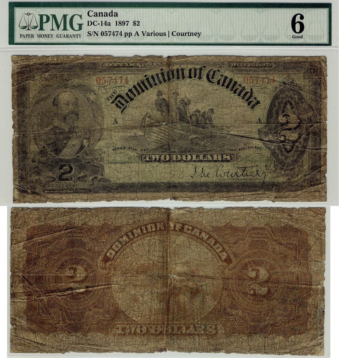1897 $2 DC-14a #057474 PMG G6 Rare Red/Brown back