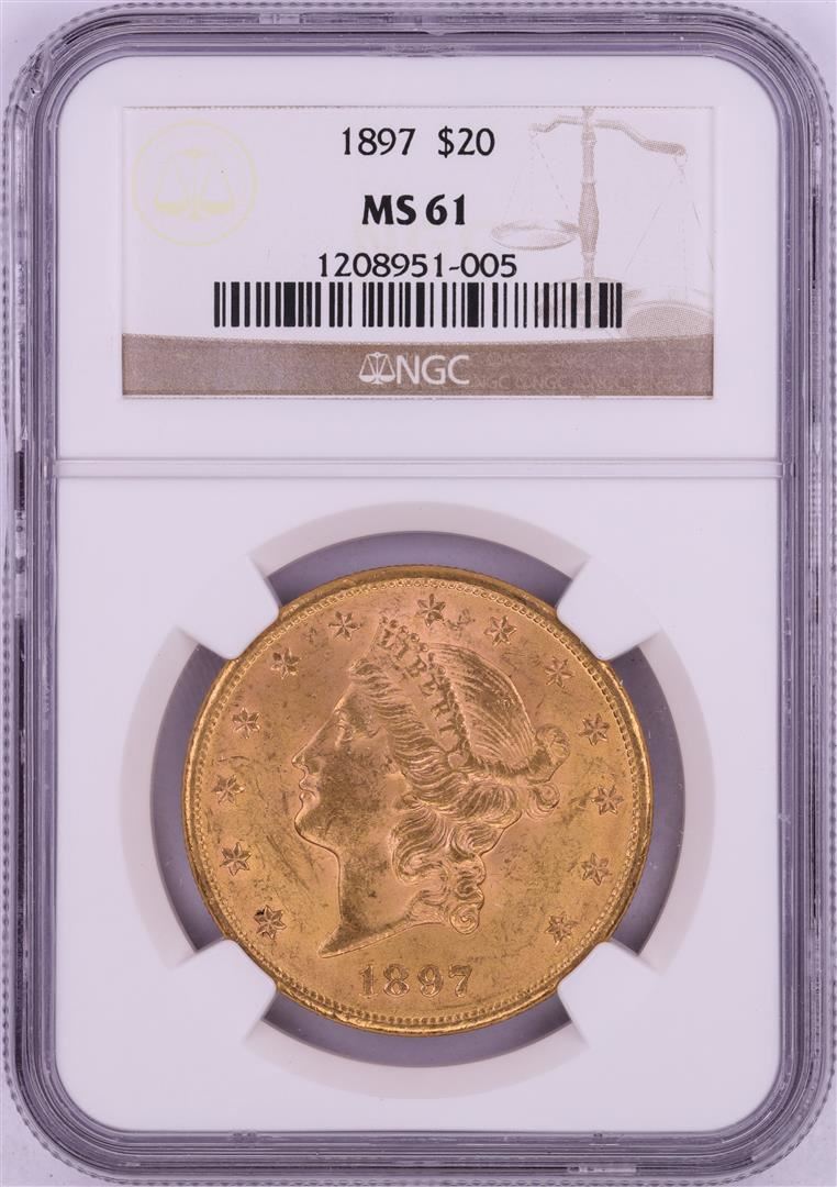 One 1897 $20 Liberty Head Double Eagle Gold Coin NGC MS61. NGC Certified.