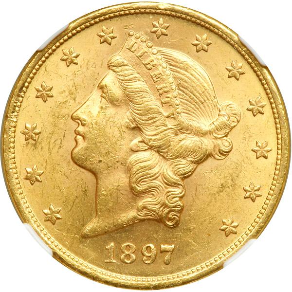 1897 $20 Liberty. NGC graded MS-61. Frosty and lightly toned (PCGS # 9031) .