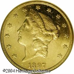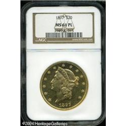 1897 $20 MS61 Prooflike NGC. An exquisitely struck <B>1897 $20 MS61 Prooflike NGC.</B></I> An exquisitely struck Double Eagle with pleasing mirrors. The fields are typically abraded for the grade. Surely scarce with prooflike surfaces. <BR><BR><B>Important notice:</B> Heritage usually auctions material at the rate of 200-250 lots per hour. On some occasions eBay Live bid software or the Internet may not be able to keep up with the pace of the auction. We recommend placing a realistic absentee bid now as insurance to avoid disappointment. Occasionally the auctioneer may eliminate or reject an eBay Live bid, and the auctioneer may also reopen a lot after the close of the eBay live bidding (usually because we missed an audience bid), and may reject your bid even if it shows you as the winning bidder. By bidding via eBay Live, you agree that Heritage may award the lot to another bidder at its sole discretion under the circumstances described above or any other reasonable circumstances. Since eBay bids are not shown to us until we open the lot on the floor, we treat those bids just like floor bids. In most cases the floor responds before the eBay bid is presented to us, due to Internet lag time, so for consistency we have made it a policy that floor bids are always considered first over tie eBay live bids. Also please note that all Heritage lots purchased through eBay Live carry a 20% Buyer's Premium. Please make sure you read the Terms and Conditions before you bid. This lot is being auctioned in conjunction with a live floor auction by Heritage Galleries & Auctioneers. All final auction and invoice information will be supplied by Heritage Galleries & Auctioneers, and all other information should be considered preliminary. Lot:6978