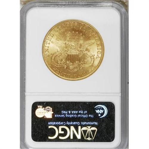 <B>1897 $20 MS62 NGC.</B></I> NGC Census: (5556/2453). PCGS Population (3679/1307). Mintage: 1,383,261. Numismedia Wsl. Price for NGC/PCGS coin in MS62: $925. (#9031)<BR><BR><B>Coin Engraver:</B> James B. Longacre<BR><BR><b>Shipping:</b> Coins & Currency (<a target="_blank" href="http://www.heritageauctions.com/common/shipping.php">view shipping information</a>)