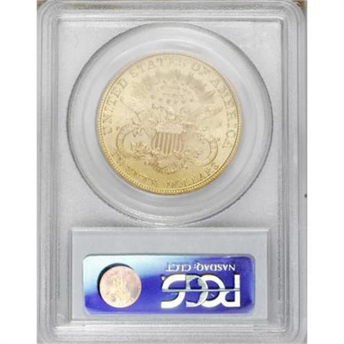 <B>1897 $20 MS62 PCGS.</B></I> PCGS Population (3666/1295). NGC Census: (5550/2448). Mintage: 1,383,261. Numismedia Wsl. Price for NGC/PCGS coin in MS62: $758. (#9031)<BR><BR><B>Coin Engraver:</B> James B. Longacre<BR><BR><b>Shipping:</b> Coins & Currency (<a target="_blank" href="http://www.heritageauctions.com/common/shipping.php">view shipping information</a>)