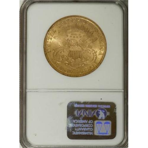<B>1897 $20 MS63 NGC.</B></I> NGC Census: (2164/289). PCGS Population (1149/158). Mintage: 1,383,261. Numismedia Wsl. Price for NGC/PCGS coin in MS63: $1,125. (#9031)<BR><BR><B>Coin Engraver:</B> James B. Longacre<BR><BR><b>Shipping:</b> Coins & Currency (<a target="_blank" href="http://www.heritageauctions.com/common/shipping.php">view shipping information</a>)