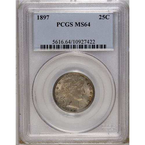 1897 25C MS64 PCGS. Highly lustrous with rich peach, o