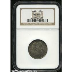 <TABLE cellSpacing=0 cellPadding=0 width="100%" bgColor=#000000 border=0><TBODY><TR><TD width="100%"><TABLE cellSpacing=1 cellPadding=3 width="100%" border=0><TBODY><TR><TD width="100%" bgColor=#79735c><FONT face=arial color=#ffffff size=3><B>Description</B> </FONT></TD></TR><TR><TD width="100%" bgColor=#ffffff><FONT face=arial size=2><B>1897 25C MS65 NGC.</B></I> Sharply impressed and richly toned overall with no singularly mentionable detractions. </FONT></TD></TR></TBODY></TABLE></TD></TR></TBODY></TABLE><BR><A name=PricesRealized></A><TABLE cellSpacing=0 cellPadding=0 width="100%" bgColor=#000000 border=0><TBODY><TR><TD width="100%"><TABLE cellSpacing=1 cellPadding=3 width="100%" border=0><TBODY><TR><TD width="100%" bgColor=#79735c><A name=PR><FONT face=arial color=#ffffff size=3><B>Previous Prices from Heritage Auctions</B> </FONT></A></TD></TR><TR><TD bgColor=#f6f6ed><TABLE cellSpacing=0 cellPadding=0 width="100%" border=1><TBODY><TR><TD align=middle width="33%"><B>Date</B></TD><TD align=middle width="33%"><B>Service</B></TD><TD align=middle width="33%"><B>Price</B></TD></TR><TR bgColor=whitesmoke><TD width="33%"><B>01/05/2001</B></TD><TD width="33%">NGC</TD><TD width="33%">$1,322.50</TD></TR><TR bgColor=whitesmoke><TD width="33%"><B>07/27/1993</B></TD><TD width="33%">NGC</TD><TD width="33%">$1,210.00</TD></TR></TBODY></TABLE></TD></TR><TR><TD bgColor=#ffffff><FONT face=arial size=1 ?>PLEASE NOTE: All prices realized reflect the final hammer price PLUS the buyer's premium in auctions that charge a buyer's premium. Each item has a notation at the top of the listing indicating whether that lot included a buyer's premium. Example: A item that sells with a final hammer price of $100 and a 20% buyer's premium will display with a price realized of $120. All information listed is intended to be as accurate as possible, but errors are possible. Please use this guide carefully and inform us of any inaccuracies. </FONT></TD></TR></TBODY></TABLE></TD></TR></TBODY></TABLE><BR><TABLE cellSpacing=0 cellPadding=0 width="100%" bgColor=#000000 border=0><TBODY><TR><TD width="100%"><TABLE cellSpacing=1 cellPadding=3 width="100%" border=0><TBODY><TR><TD width="100%" bgColor=#79735c colSpan=6><FONT face=arial color=#ffffff size=3><B>Price Guide*</B> </FONT></TD></TR><TR bgColor=#f6f6ed><TD align=middle><B>Grade</B> </TD><TD align=middle><B>Coin World<BR>(Trends)</B> </TD><TD align=middle><B>Numismedia<BR>Retail</B> </TD><TD align=middle><B>Numismedia<BR>Wholesale</B> </TD><TD align=middle><B>Coin<BR>Universe</B> </TD><TD align=middle><B>Heritage<BR>Value Index</B> </TD></TR><TR bgColor=#ffffff><TD align=middle>64</TD><TD align=right>$475.00</TD><TD align=right>$545.00</TD><TD align=right>$436.00</TD><TD align=right>$475.00</TD><TD align=right>$328.50</TD></TR><TR style="FONT-WEIGHT: bold" bgColor=#cccfdd><TD align=middle>65</TD><TD align=right>$1,650.00</TD><TD align=right>---</TD><TD align=right>$1,050.00</TD><TD align=right>$1,275.00</TD><TD align=right>$932.13</TD></TR><TR bgColor=#ffffff><TD align=middle>66</TD><TD align=right>---</TD><TD align=right>---</TD><TD align=right>$1,675.00</TD><TD align=right>$2,200.00</TD><TD align=right>$1,540.00</TD></TR><TR bgColor=#ffffff><TD colSpan=6><FONT size=1>*All information listed is intended to be as accurate as possible, but errors are possible. No item may be returned or refused based on this information which is provided as a service to our customers. You should contact each pricing source directly to determine the accuracy of this information. </FONT></TD></TR></TBODY></TABLE></TD></TR></TBODY></TABLE><BR><TABLE cellSpacing=0 cellPadding=0 width="100%" bgColor=#000000 border=0><TBODY><TR><TD width="100%"><TABLE cellSpacing=1 cellPadding=3 width="100%" border=0><TBODY><TR><TD width="100%" bgColor=#79735c><FONT face=arial color=#ffffff size=3><B>Population Guide</B> </FONT></TD></TR><TR bgColor=#ffffff><TD align=middle><!-- Begin Output of Population Grid--><TABLE cellSpacing=0 cellPadding=0 width="100%" border=0><TBODY><TR><TD vAlign=center><TABLE cellSpacing=0 width="100%" border=1 cellsadding="3"><TBODY><TR><TD vAlign=center><TABLE cellSpacing=0 cellPadding=3 width="100%" border=1><TBODY><TR><TD vAlign=center align=middle bgColor=#f0f1e8 colSpan=2 <CENTER><FONT face=Arial size=2><B>PCGS Pop </B></FONT><CENTER></CENTER></TD><TD vAlign=center align=middle bgColor=#f0f1e8 colSpan=2><CENTER><FONT face=Arial size=2><B>NGC Pop</B></CENTER></FONT></TD></TR><TR><TD vAlign=center><FONT face=Arial size=2>(65)</FONT> </TD><TD vAlign=center align=right><FONT face=Arial size=2>10</FONT> </TD><TD vAlign=center><FONT face=Arial size=2>(65)</FONT> </TD><TD vAlign=center align=right><FONT face=Arial size=2>17</FONT> </TD></TR><TR><TD vAlign=center><FONT face=Arial size=2>(>65)</FONT> </TD><TD vAlign=center align=right><FONT face=Arial size=2>7</FONT> </TD><TD vAlign=center><FONT face=Arial size=2>(>65)</FONT> </TD><TD vAlign=center align=right><FONT face=Arial size=2>5</FONT> </TD></TR></TBODY></TABLE></TD></TR></TBODY></TABLE></TD></TR></TBODY></TABLE><!-- End Output of Population Grid--> Important notice: Heritage usually auctions material at the rate of 200-250 lots per hour. On some occasions eBay Live bid software or the Internet may not be able to keep up with the pace of the auction. We recommend placing a realistic absentee bid now as insurance to avoid disappointment. Occasionally the auctioneer may eliminate or reject an eBay Live bid, and the auctioneer may also reopen a lot after the close of the eBay live bidding (usually because we missed an audience bid), and may reject your bid even if it shows you as the winning bidder. By bidding via eBay Live, you agree that Heritage may award the lot to another bidder at its sole discretion under the circumstances described above or any other reasonable circumstances. Also please note that all Heritage lots purchased through eBay Live carry a 20% Buyer's Premium. Please make sure you read the Terms and Conditions be