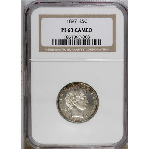 1897 25C PR63 Cameo NGC. The moderately frosted, unton