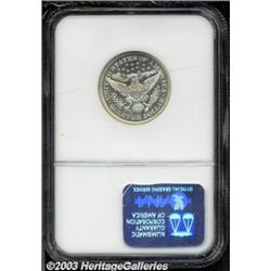 1897 25C PR67 Cameo NGC. A lovely Superb Gem with a brilliant obverse and a hint of gold color on the central reverse. Every detail of the fletchings and the shield corners is seemingly fully delivered. The cameo contrast is unmistakable, and the fields have good reflectivity. A well preserved representative of this low mintage proof issue. Population: 4 in 67 Cameo, 1 finer (7/03). Important notice: Heritage usually auctions material at the rate of 200-250 lots per hour. On some occasions eBay Live bid software or the Internet may not be able to keep up with the pace of the auction. We recommend placing a realistic absentee bid now as insurance to avoid disappointment. Occasionally the auctioneer may eliminate or reject an eBay Live bid, and the auctioneer may also reopen a lot after the close of the eBay live bidding (usually because we missed an audience bid), and may reject your bid even if it shows you as the winning bidder. By bidding via eBay Live, you agree that Heritage may award the lot to another bidder at its sole discretion under the circumstances described above or any other reasonable circumstances. Also please note that all Heritage lots purchased through eBay Live carry a 20% Buyer's Premium. Please make sure you read the Terms and Conditions before you bid.