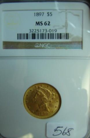 1897 $5.00 Liberty Gold Coin NGC MS 62