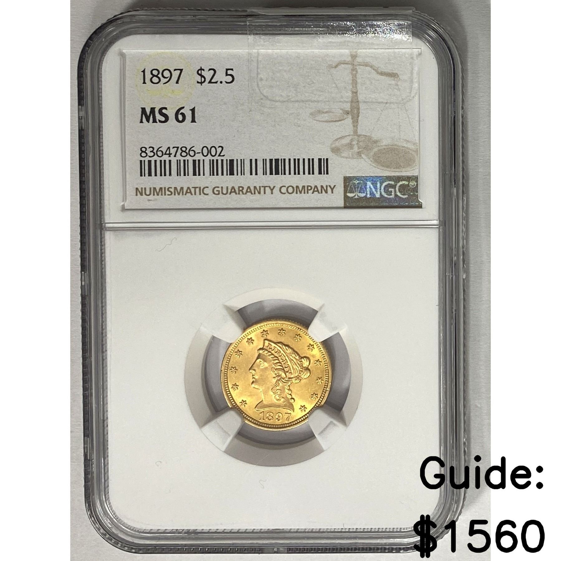 1897 $5 Gold Half Eagle NGC MS61