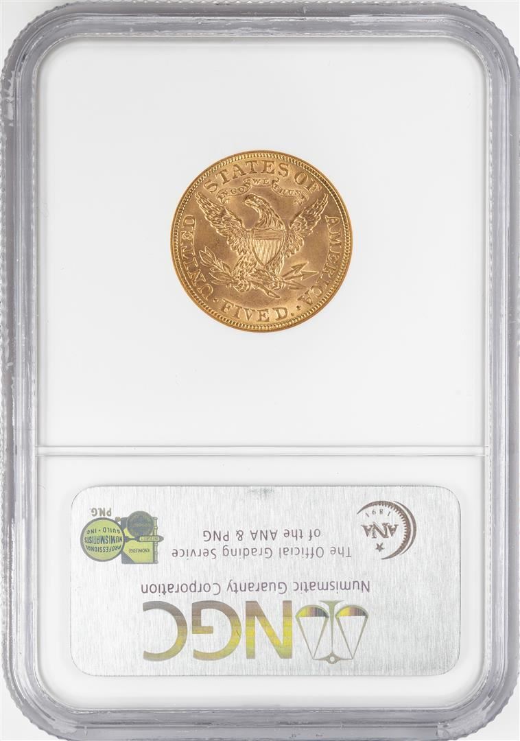 One 1897 $5 Liberty Head Half Eagle Gold Coin NGC MS62. NGC Certified.